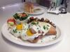<p>Pains dorées, jambon d'autrefois, croissants, omelettes, oeufs bénédictines, crêpes, galettes de sarrasin, brochettes de fruits frais, sundae déjeuner, quiches en croustade d'amandes et champignons, bagels, pains fruités, croûtes de crevettes.</p>