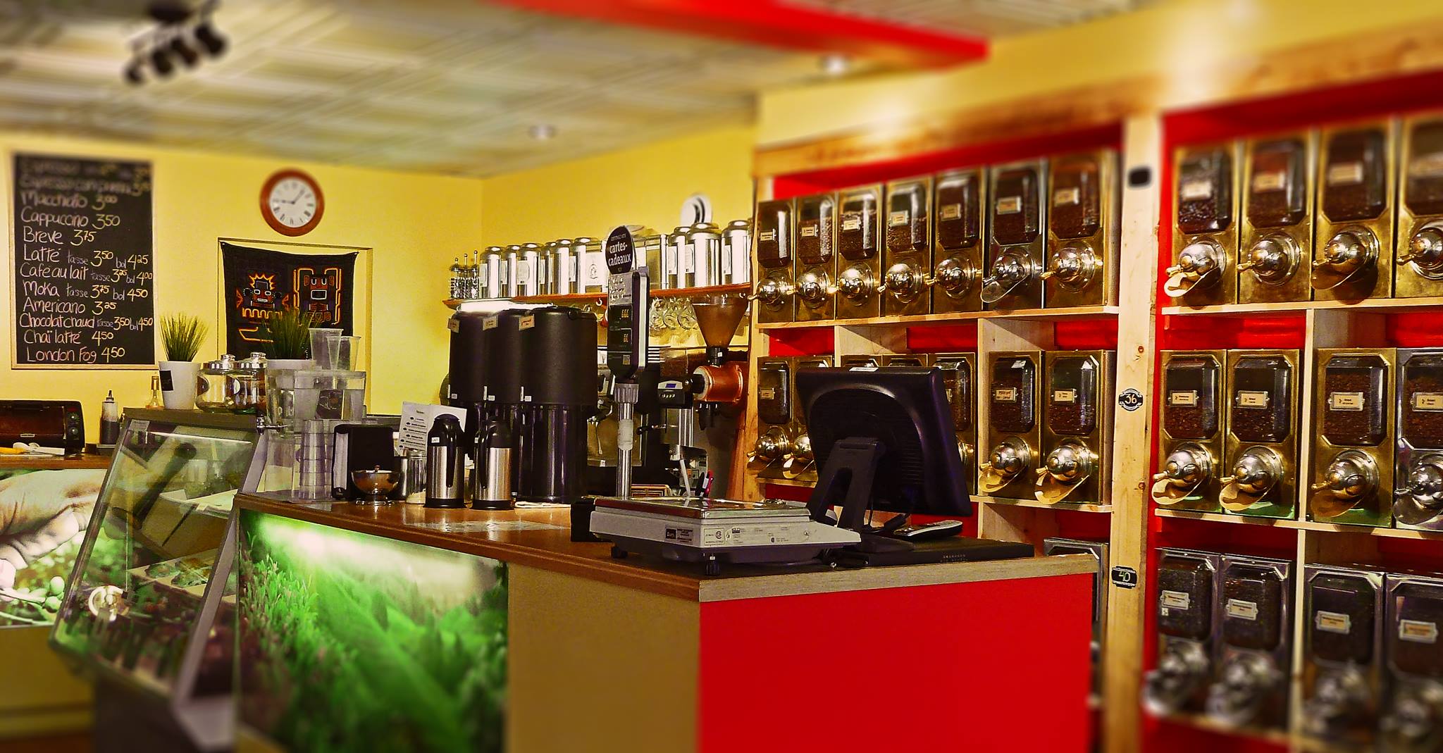 Le Café du Clocher de Rivière-du-Loup est fier de servir les cafés de la Brûlerie de l’Est, torréfiés sur place, dans une ambiance unique et chaleureuse. Les amateurs de thés et tisanes seront choyés avec les excellents produits haute gamme Liberthé, marque de commerce de la Brûlerie de l’Est. Pour accompagner votre boisson préférée, pourquoi ne pas essayer l’une de nos gâteries faites maison, tels que les muffins, galettes, carrés aux dattes et biscottis.